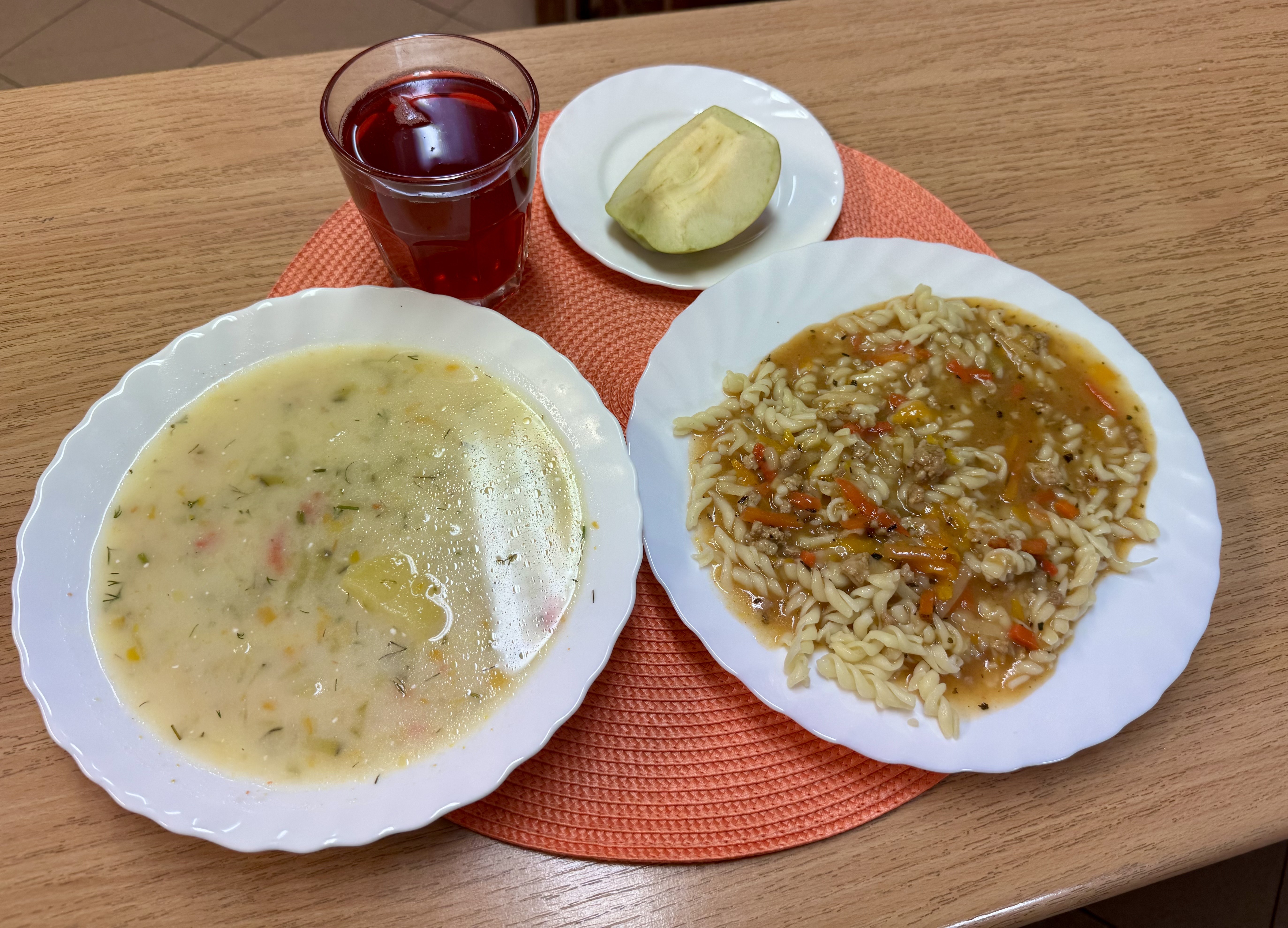 | Zupa pomidorowa z makaronem 300ml Risotto z warzywami 300g (GLU) Jabłko 150g Kompot owocowy 250ml |